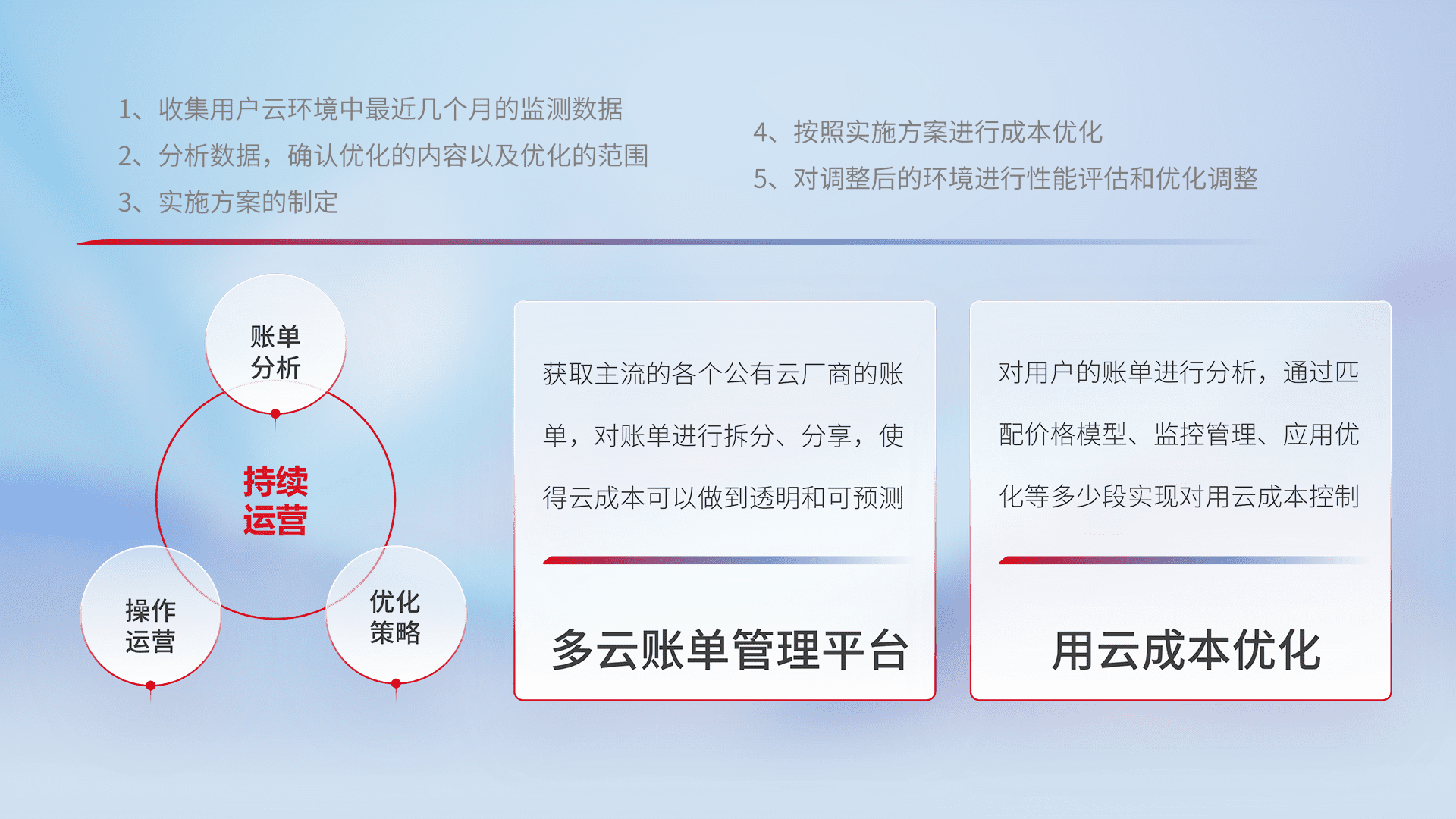 运用智能化工具分析云资源,,提供日常费用可视化工具,,自动账单拆分,,成本优化云上费用,,,,降本增效。。