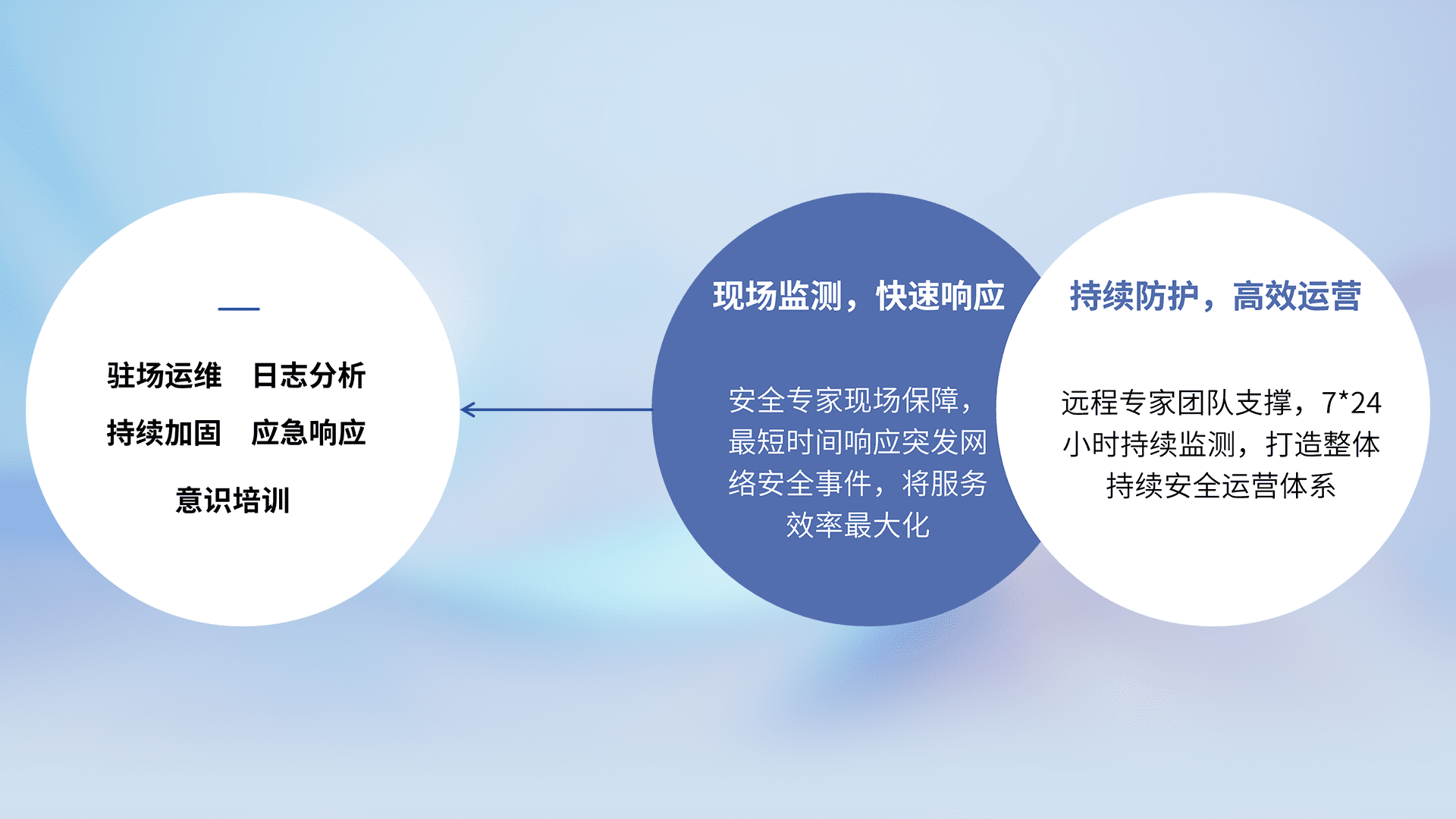 7X24小时持续监测安全事件,保持安全策略有效性,降低资产脆弱性风险,,精准拦截黑客攻击,,,减少被黑客利用的机会,,第一时间遏制,,,降低损失。。